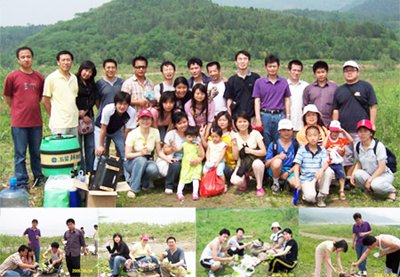 到达目的地之后,我们很快就发现了一个风水宝地,大家立即支起炉灶,整理菜品,并进行了一个有趣的串肉比赛。在一片呐喊助威声中,经过激烈的角逐,吴亚斌和黄萍脱颖而出,成为了当天的串肉冠军。由于我们事先为每个小组都安排了一位烧烤好手,使得每组成员都能这次烧烤中充分享受美味的食物。大家一边乐滋滋的享用午餐一边欣赏着四周美丽的湖光山色,体味着天地人和的美妙景致,仿佛忘记了时间和空间,回到了远古时代。