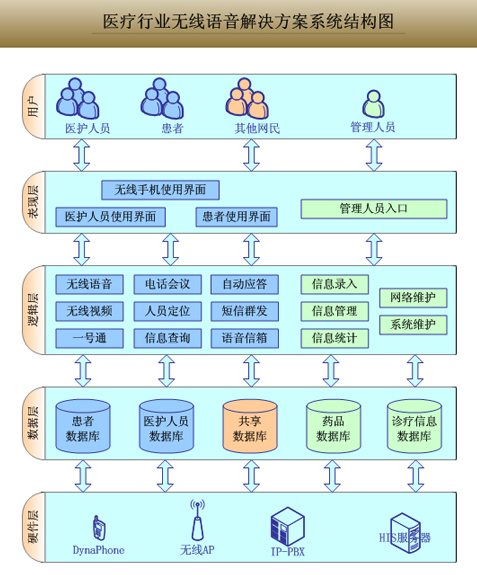 华科力扬是国内最早进行无线网络技术研发的倡导者和产品生产商,拥有丰富的应用经验。为帮助医疗行业机构建立高效便捷、安全可靠的无线语音系统,节省机构整体运行成本,华科力扬推出了一套完整的无线语音解决方案。该方案可以在帮助您减少人力资源投入同时提高工作效率;满足行业在监控管理等各方面的业务需求;有效的较少各方面的资本投入;实现医院网络的安全管理。并且该方案还可为医疗行业进行多种信息系统的扩展。